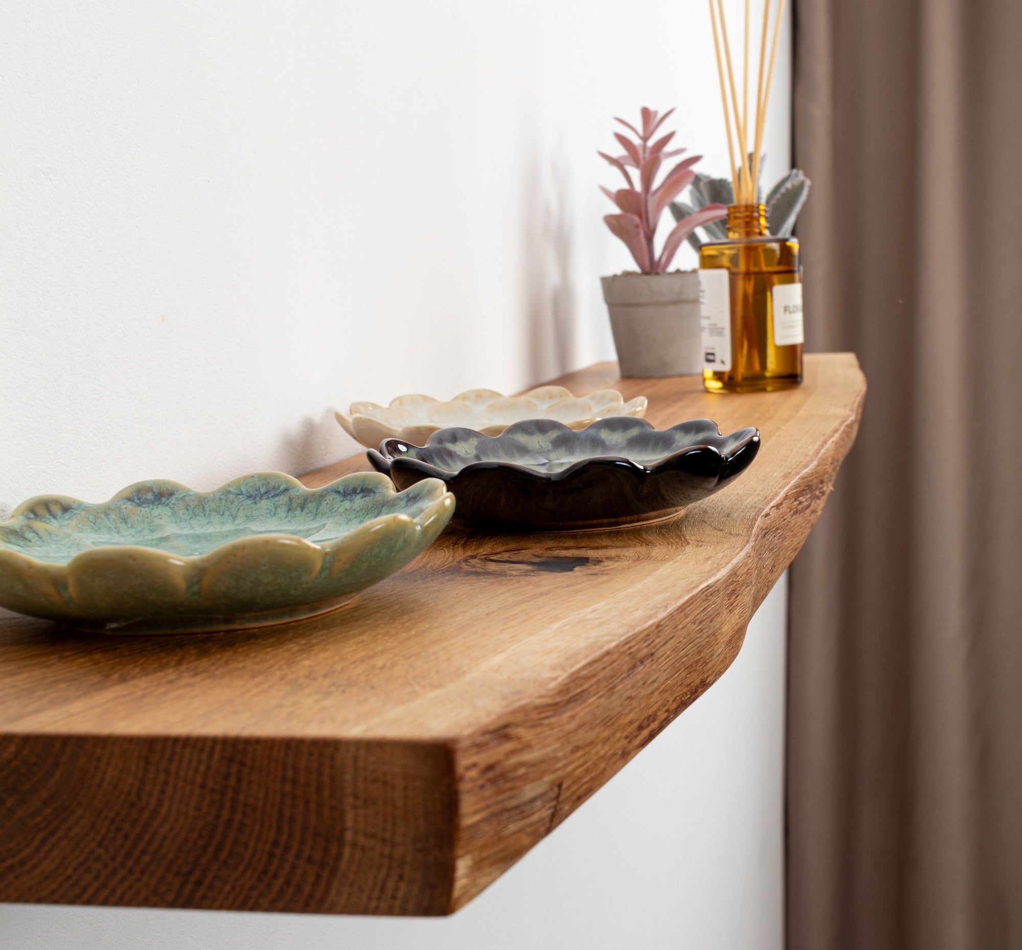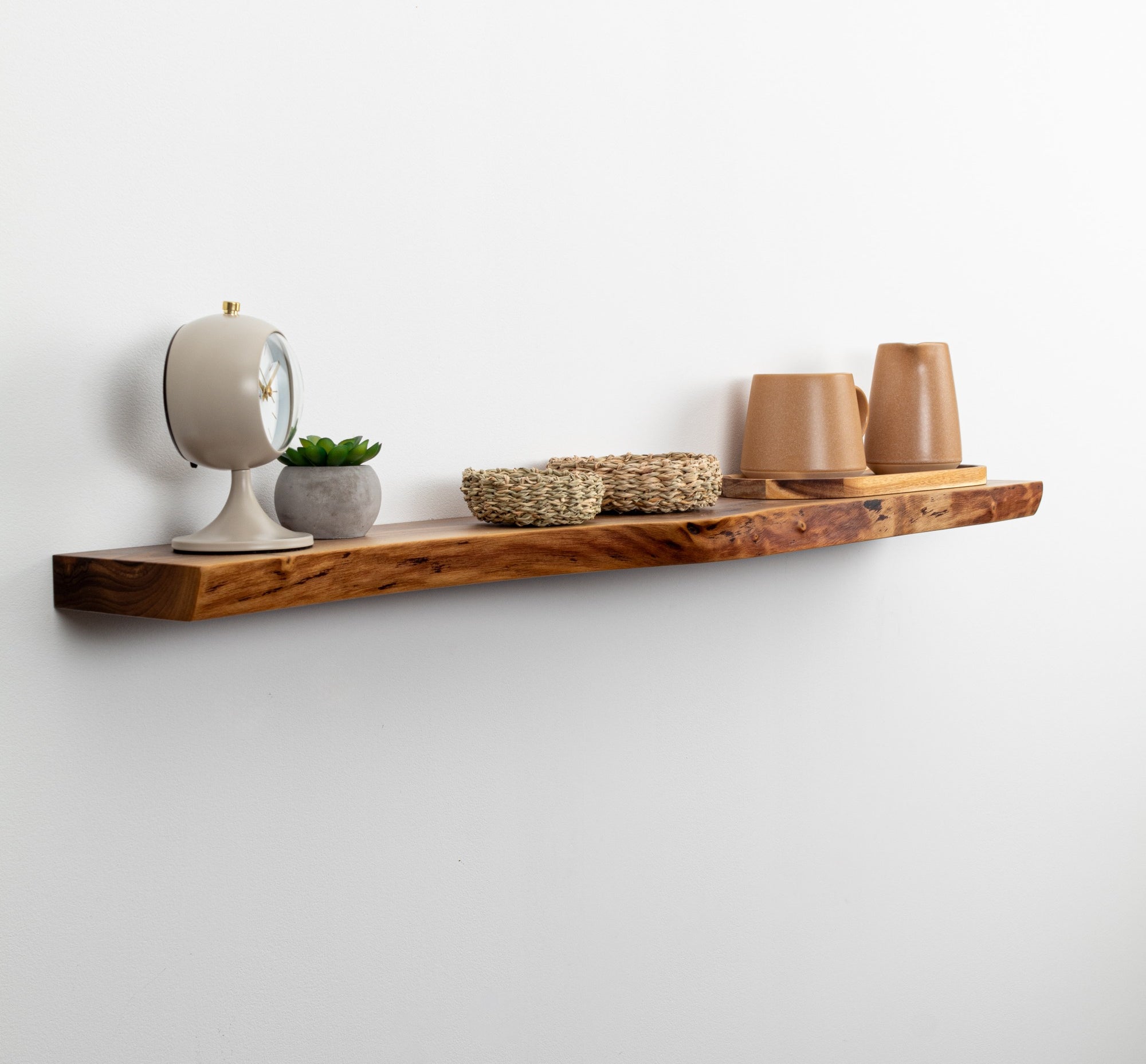 When working on live edge floating wood shelves, customization is our favorite part! Need a specific size? Be it a longer, deeper, or a completely unique dimension โ weโre here to deal with all of your requirements to adorn your home!