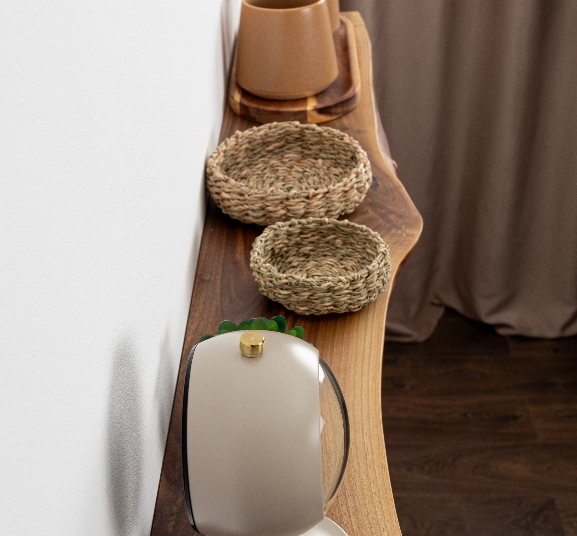 Every item is crafted from a single (!) piece of wood, keeping the natural contours exactly the way Mother Nature created it. We never cut the waves, curves, and organic lines (after all, they are the soul of the material!) to keep the true shape of the tree untouched. Plus, our artisans use VOC-FREE clear finish without any stains. It means no two products are ever the same!