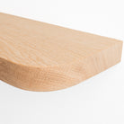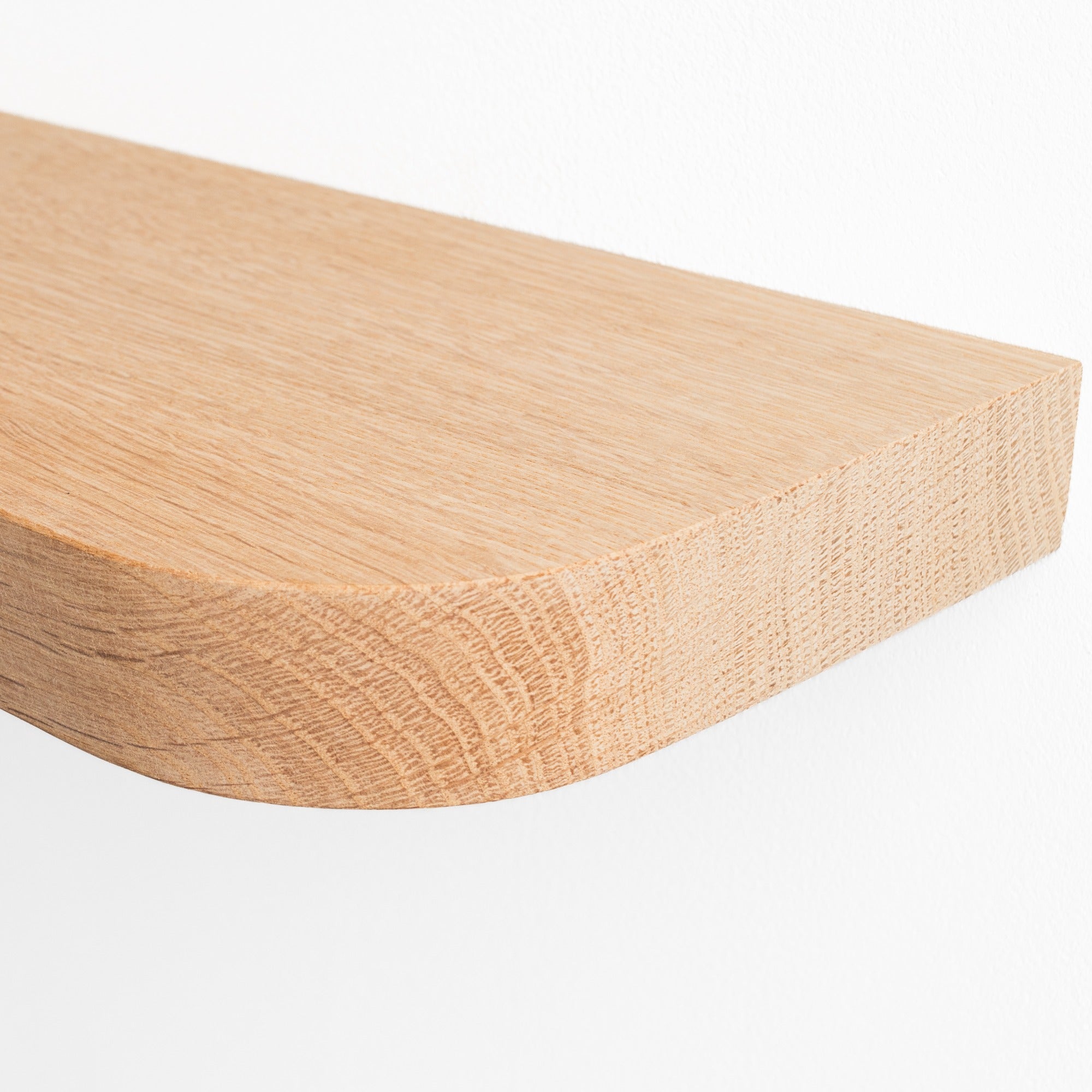 Radius edge shelves have smooth, rounded corners for a softer look, while square edge wall shelves offer a sharp, minimalistic profile β€” both are available in oak and walnut.