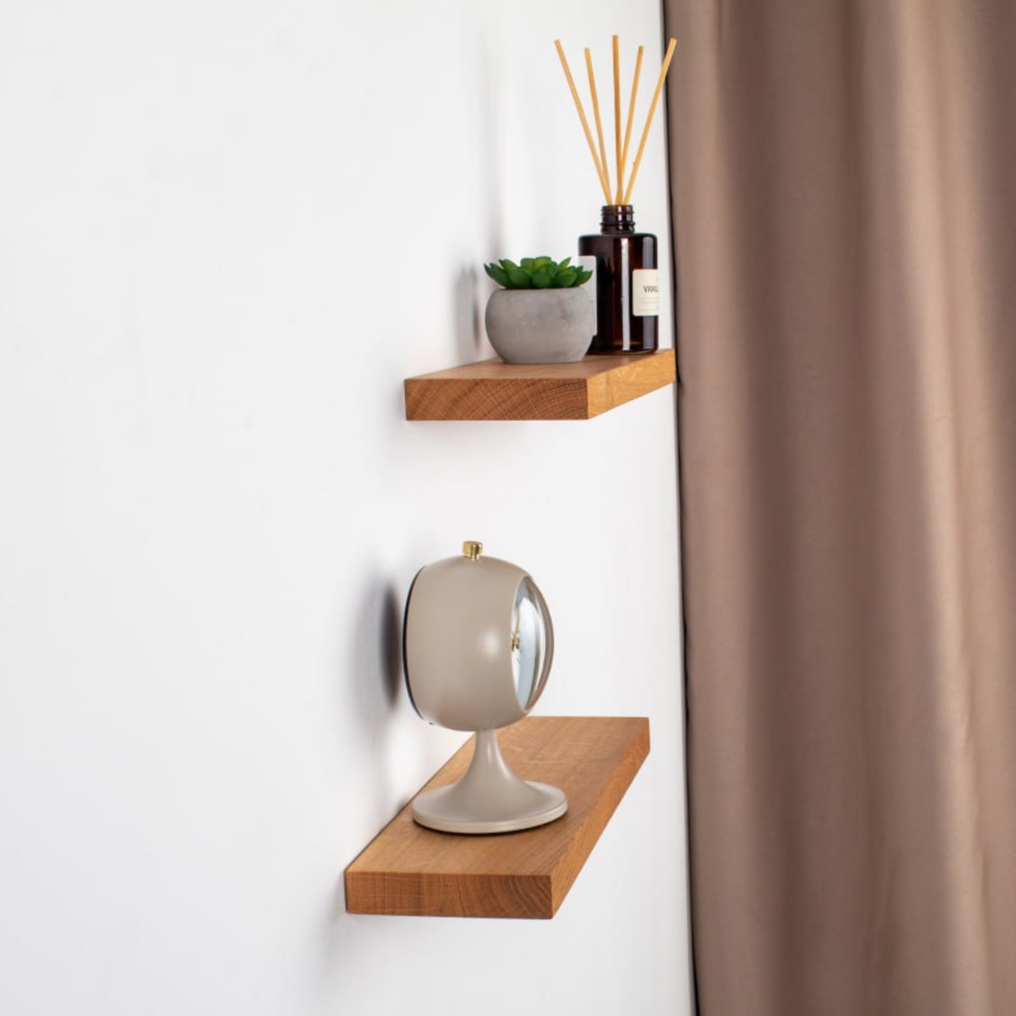 Absolutely. Our solid wood wall shelves are sealed and moisture-resistant, making them perfect for bathrooms and kitchens β especially oak floating shelves.